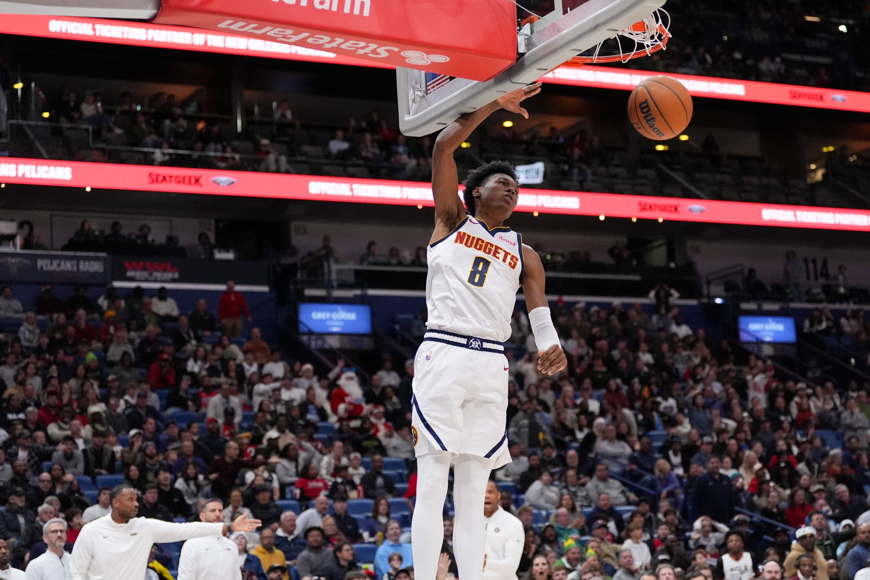 2026年1月14日战鹈鹕,掘金首发阵容五缺三,佩顿·沃特森轰下赛季第二高的31分外加7篮板、5助攻、2抢断、1盖帽。算上此前的4场,沃特森在5场比赛中以62.5%的三分命中率投中15个三分轰下129分,抢断加盖帽为15个。