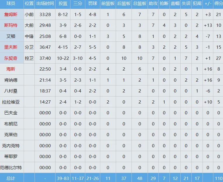 湖人数据如下: